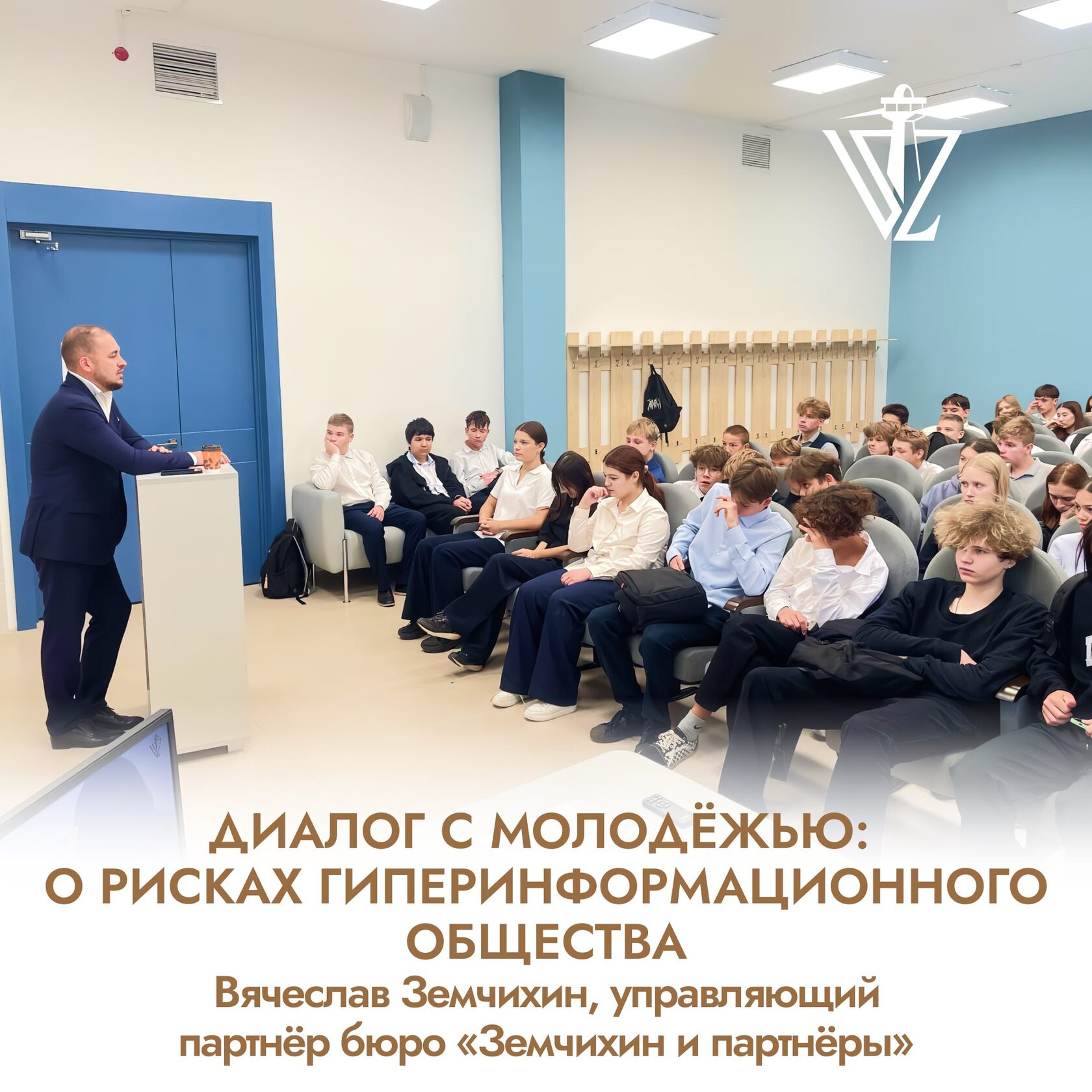 Вячеслав Земчихин, управляющий партнёр бюро «Земчихин и партнёры», выступил перед учащимися 7-х и 9-х классов школы «Галактика». Тема встречи — «Правовые риски современной молодежи: последствия образования гиперинформационного общества».