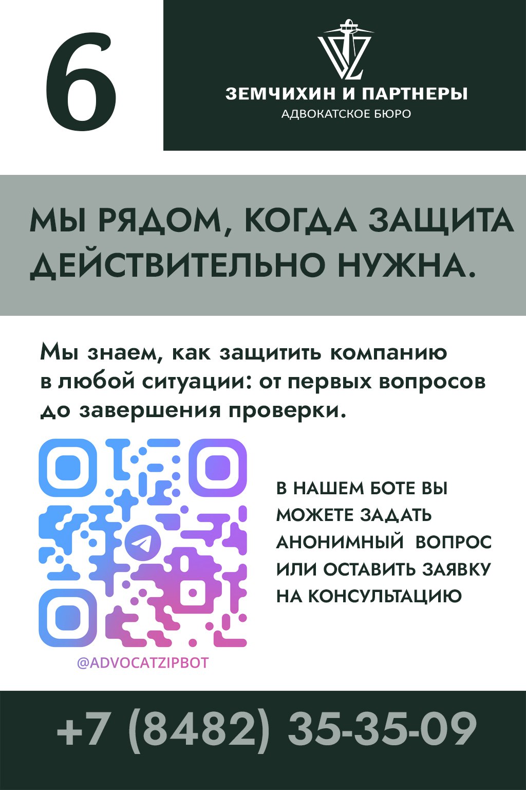 ▶️ В нашем боте вы можете задать анонимный вопрос или оставить заявку на консультацию: @AdvocatZiPBot